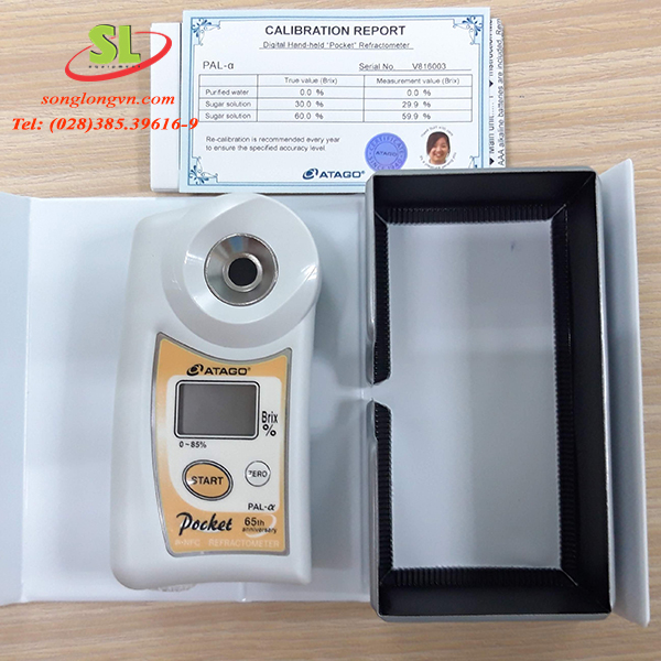 - Máy đo độ ngọt điện tử model Pal-Alpha của hãng Atago được thiết kế theo tiêu chuẩn công nghệ Nhật Bản, nhỏ gọn, cho kết quả đo trong 3 giây, dễ sử dụng, bù nhiệt tự động, chức năng tiết kiệm pin khi không sử dụng sau 2 phút, bộ nhớ lưu trữ đến 20 giá trị đo, độ bền cao, bảo hành 12 tháng.