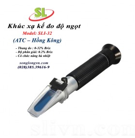 - Khúc xạ kế đo độ ngọt model SLI-32 dạng cầm tay phù hợp đo trong nước ép trái cây, mứt, nước ngọt, độ chín của trái cây, hàm lượng đường trong củ cải đường và mía nước trái cây, nước sốt, các loại dầu hòa tan.