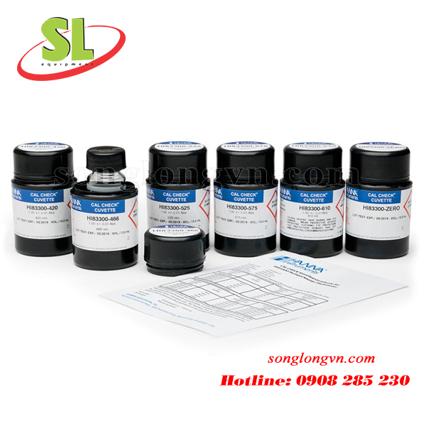 Bộ chuẩn CAL Check HI83325-11 của HANNA được phát triển để mô phỏng một giá trị độ hấp thụ cụ thể ở mỗi bước sóng 420 nm, 466 nm, 525 nm, 575 nm và 610 nm để xác minh tính chính xác của máy. Điều này rất hữu ích cho người sử dụng với phương pháp hóa học của riêng mình và cho các nhà giáo dục để dạy các khái niệm về độ hấp thụ bằng cách sử dụng Luật Beer-Lambert.