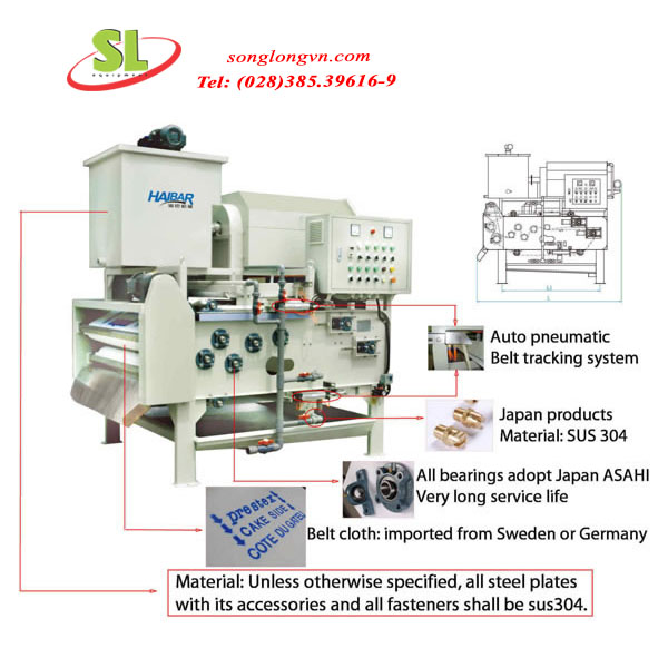 Tính năng đặc điểm của máy ép bùn băng tải: